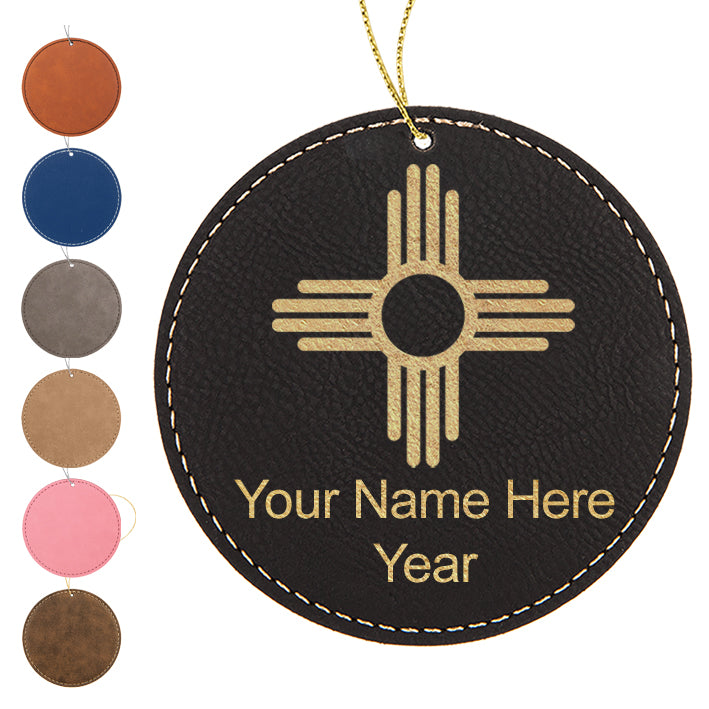 LaserGram Christmas Ornament, Flag of New Mexico, Personalized Engraving Included (Faux Leather, Round Shape)