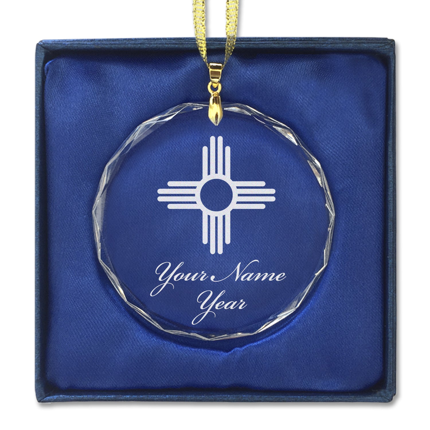 LaserGram Christmas Ornament, Flag of New Mexico, Personalized Engraving Included (Round Shape)