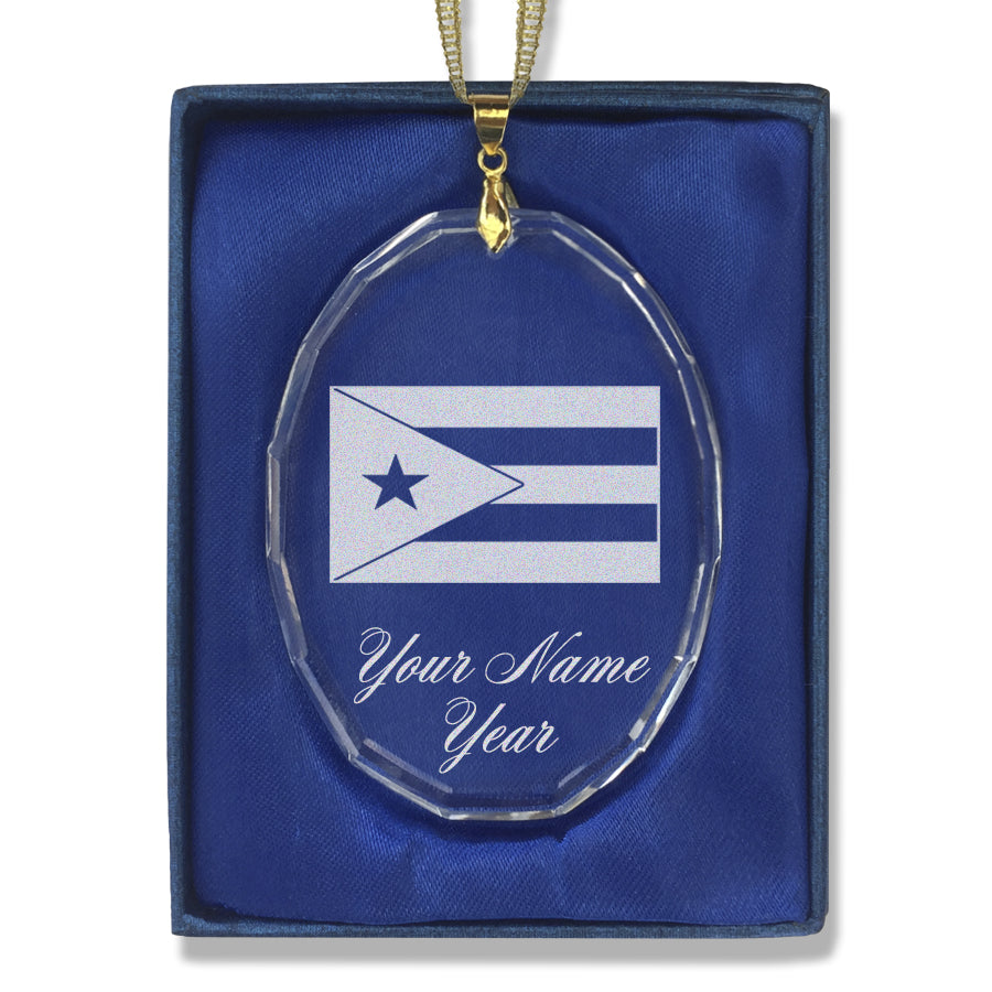 LaserGram Christmas Ornament, Flag of Puerto Rico, Personalized Engraving Included (Oval Shape)