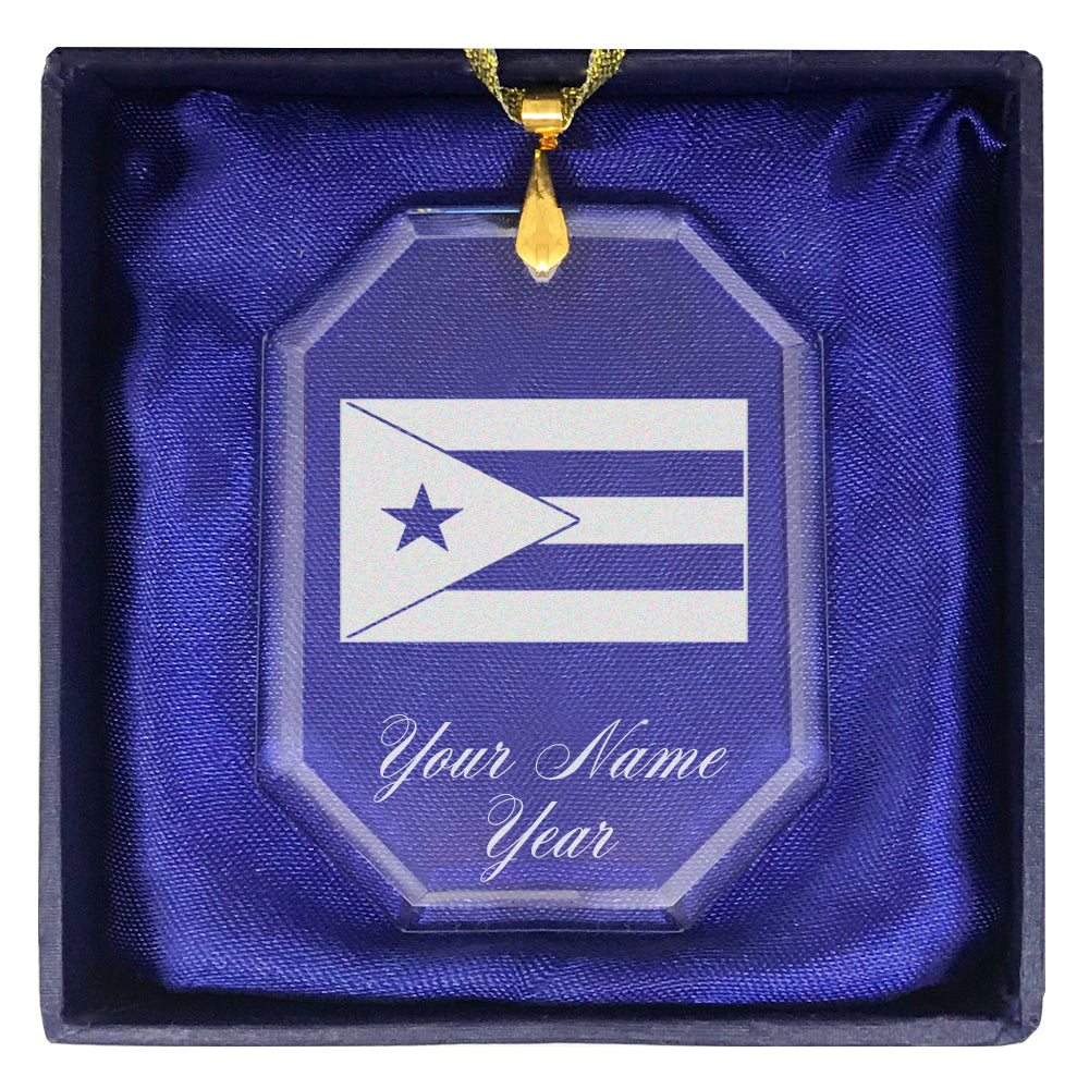 LaserGram Christmas Ornament, Flag of Puerto Rico, Personalized Engraving Included (Rectangle Shape)