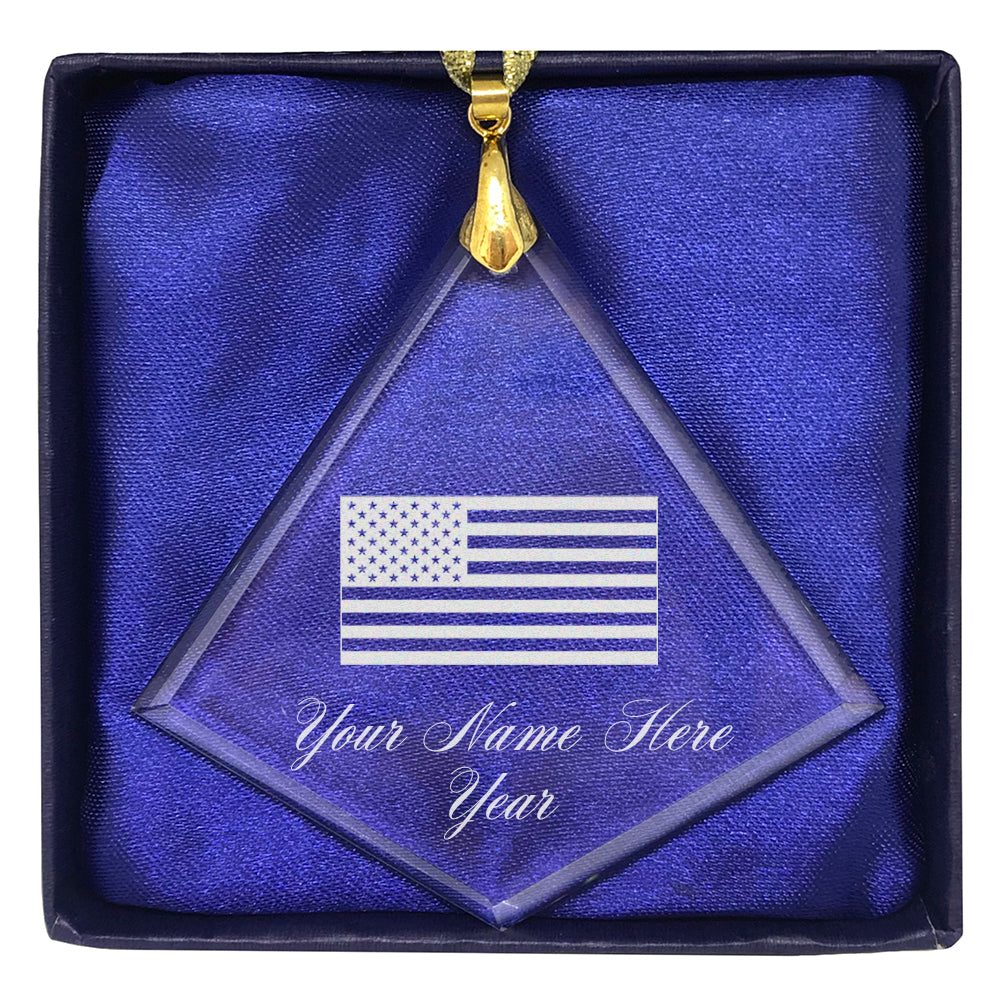 LaserGram Christmas Ornament, Flag of the United States, Personalized Engraving Included (Diamond Shape)