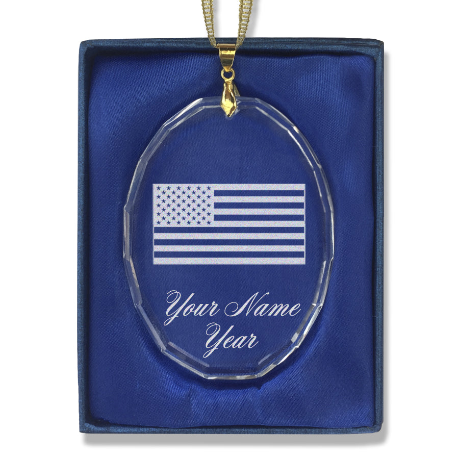 LaserGram Christmas Ornament, Flag of the United States, Personalized Engraving Included (Oval Shape)
