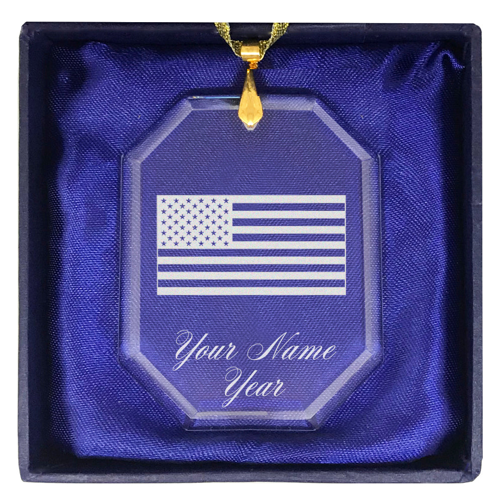 LaserGram Christmas Ornament, Flag of the United States, Personalized Engraving Included (Rectangle Shape)