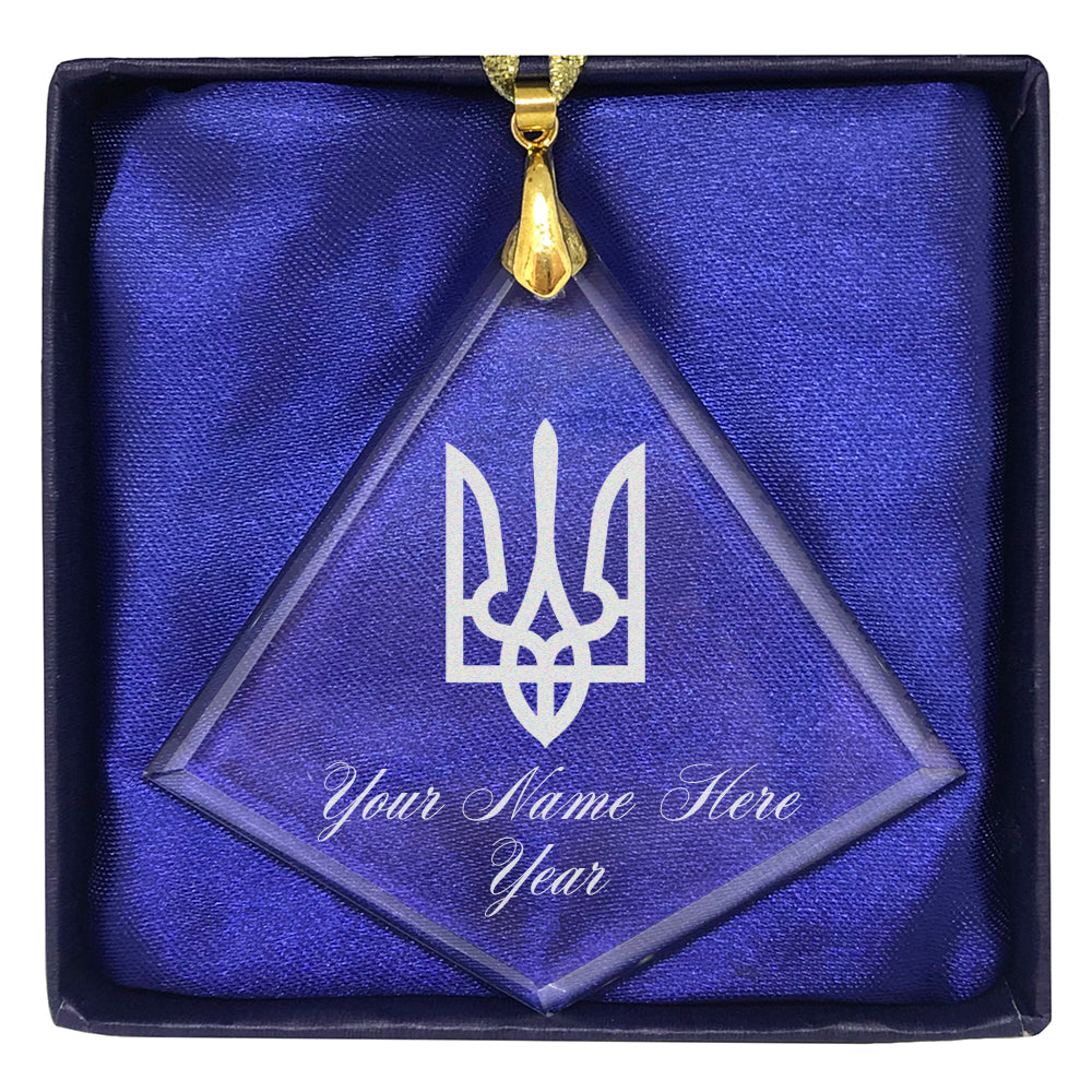 LaserGram Christmas Ornament, Flag of Ukraine, Personalized Engraving Included (Diamond Shape)