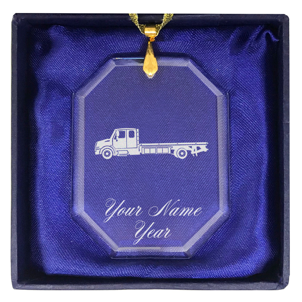 LaserGram Christmas Ornament, Flat Bed Tow Truck, Personalized Engraving Included (Rectangle Shape)