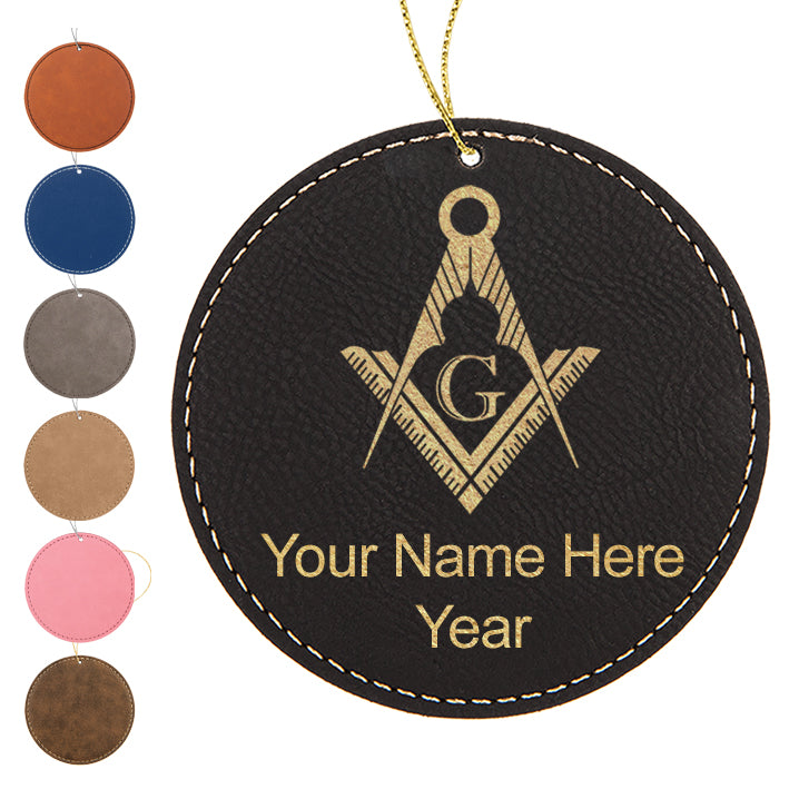 LaserGram Christmas Ornament, Freemason Symbol, Personalized Engraving Included (Faux Leather, Round Shape)