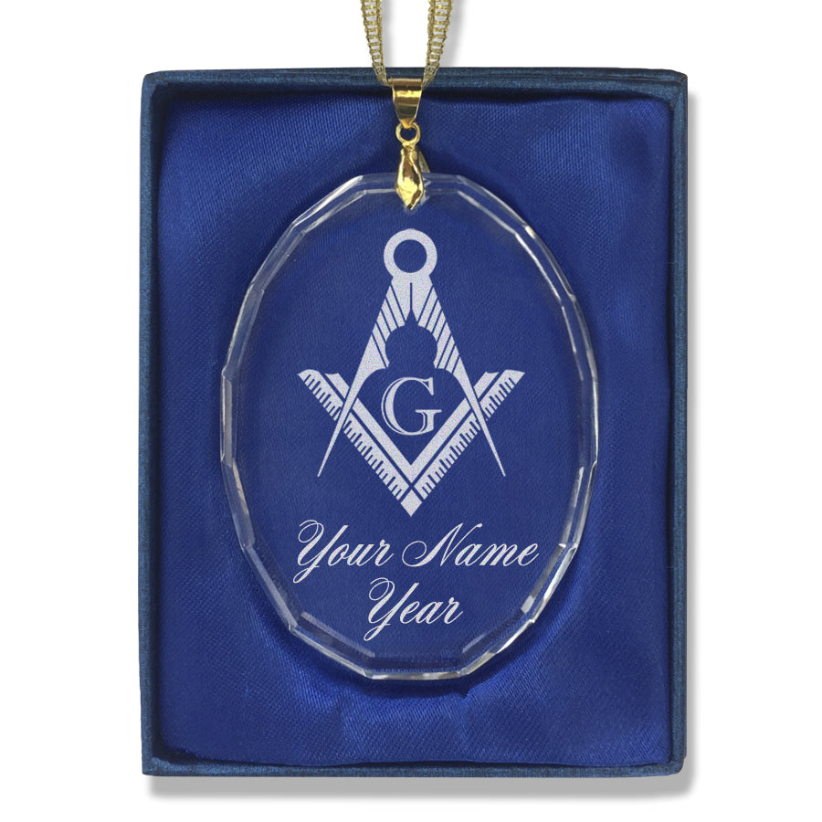 LaserGram Christmas Ornament, Freemason Symbol, Personalized Engraving Included (Oval Shape)