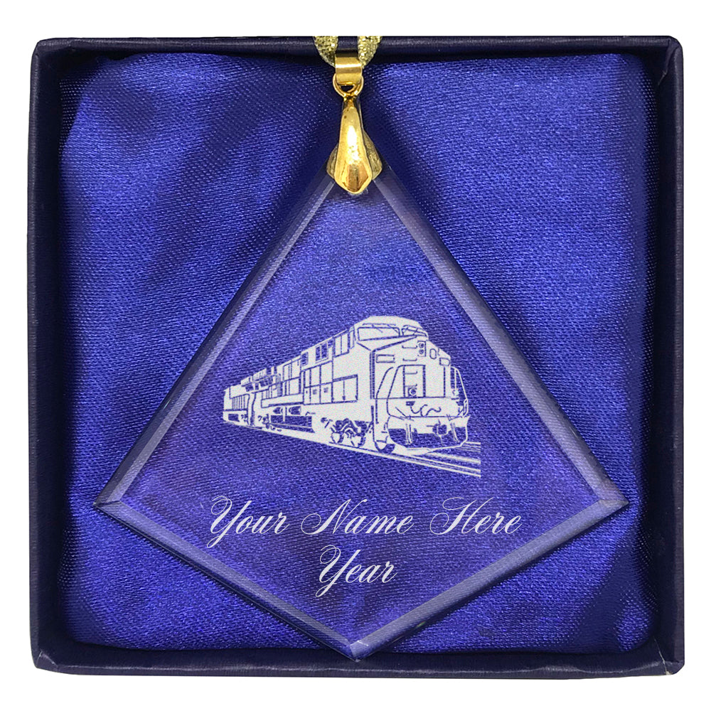 LaserGram Christmas Ornament, Freight Train, Personalized Engraving Included (Diamond Shape)