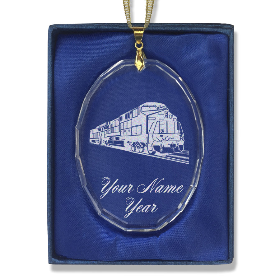 LaserGram Christmas Ornament, Freight Train, Personalized Engraving Included (Oval Shape)