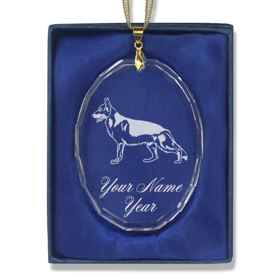 LaserGram Christmas Ornament, German Shepherd Dog, Personalized Engraving Included (Oval Shape)