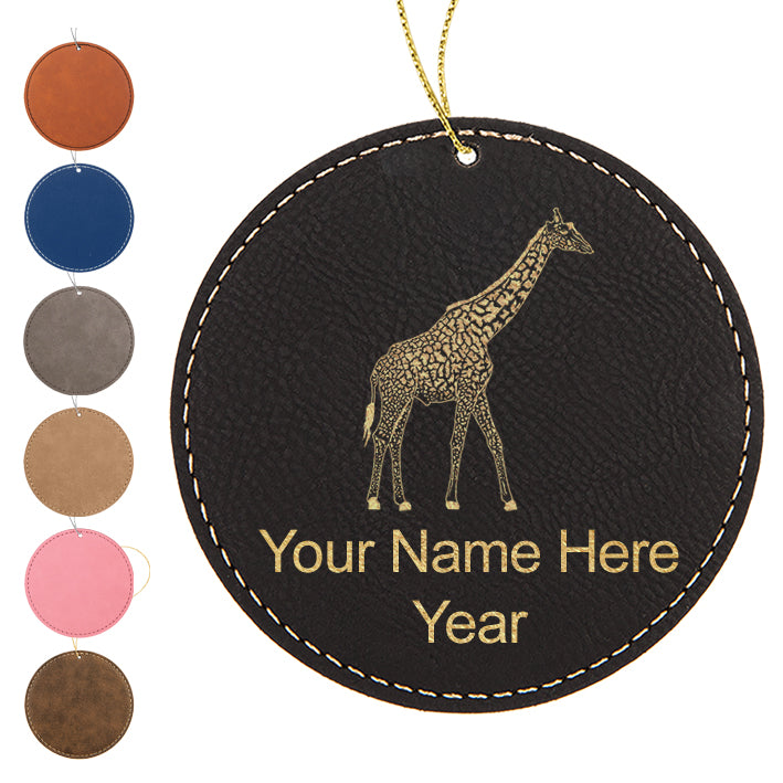 LaserGram Christmas Ornament, Giraffe, Personalized Engraving Included (Faux Leather, Round Shape)