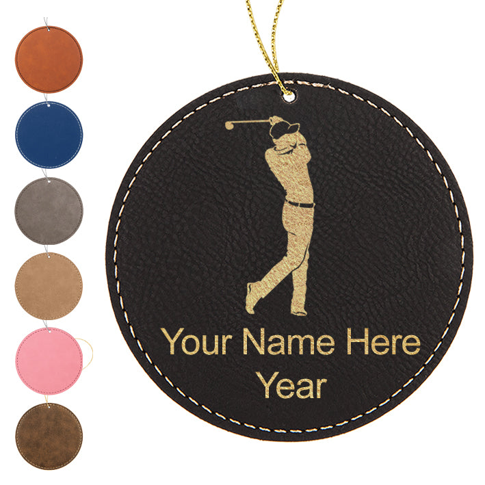 LaserGram Christmas Ornament, Golfer Golfing, Personalized Engraving Included (Faux Leather, Round Shape)