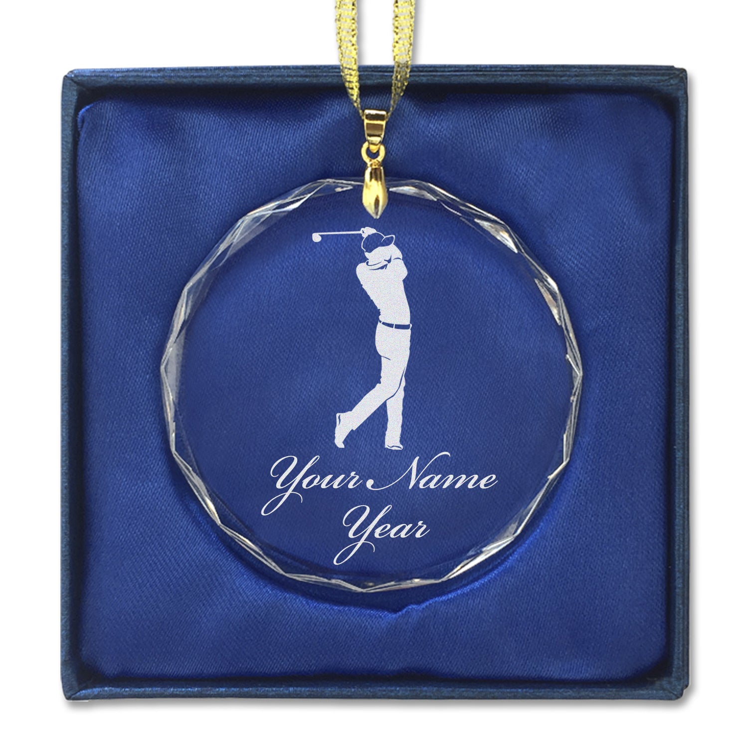 LaserGram Christmas Ornament, Golfer Golfing, Personalized Engraving Included (Round Shape)