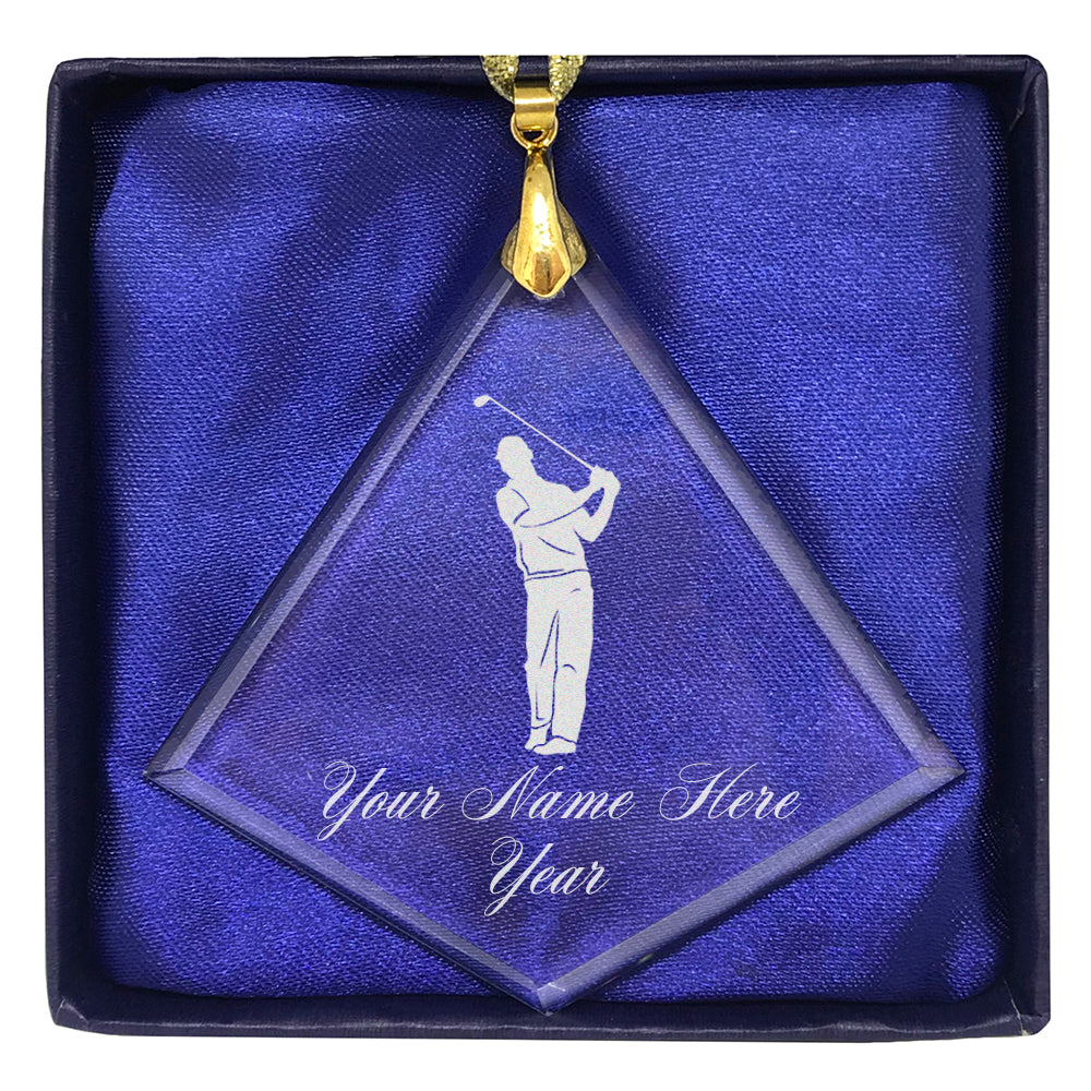 LaserGram Christmas Ornament, Golfer, Personalized Engraving Included (Diamond Shape)