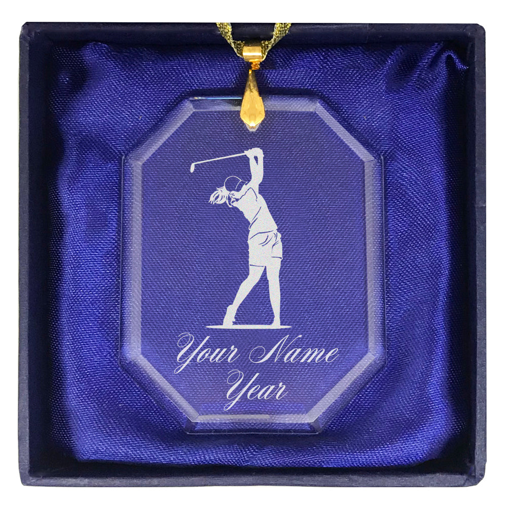 LaserGram Christmas Ornament, Golfer Woman, Personalized Engraving Included (Rectangle Shape)