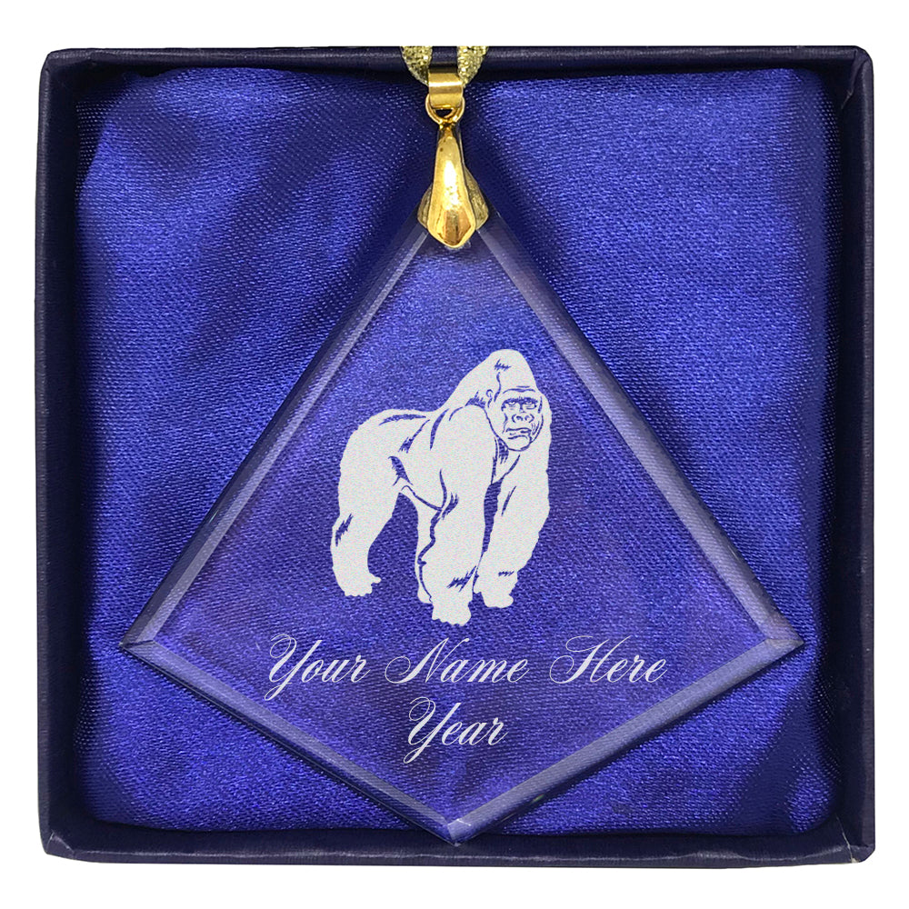 LaserGram Christmas Ornament, Gorilla, Personalized Engraving Included (Diamond Shape)