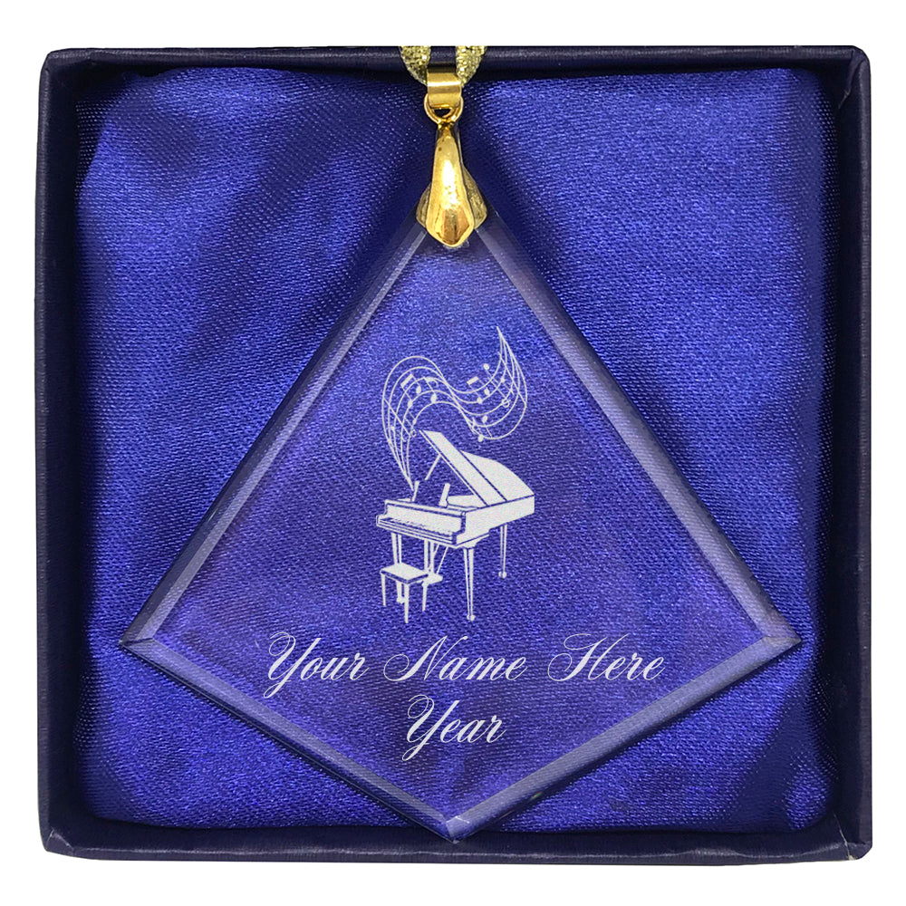 LaserGram Christmas Ornament, Grand Piano, Personalized Engraving Included (Diamond Shape)