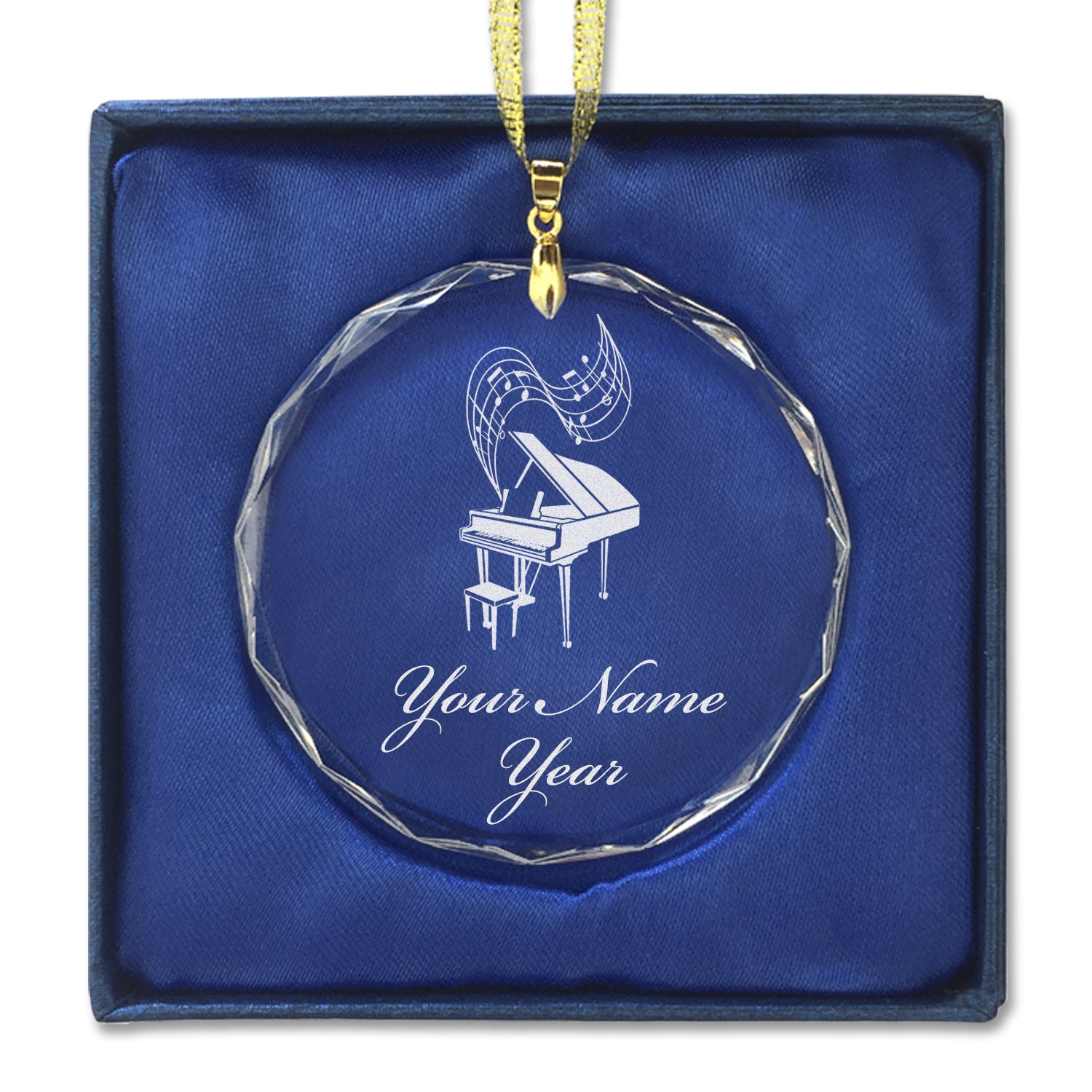 LaserGram Christmas Ornament, Grand Piano, Personalized Engraving Included (Round Shape)