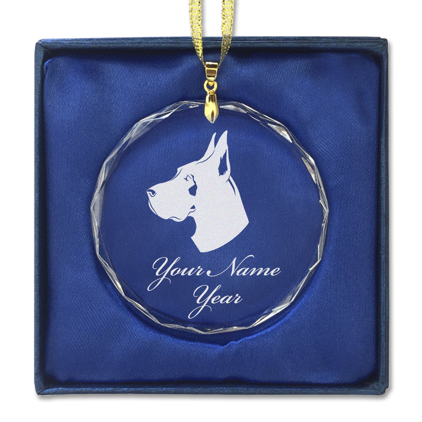 LaserGram Christmas Ornament, Great Dane Dog, Personalized Engraving Included (Round Shape)