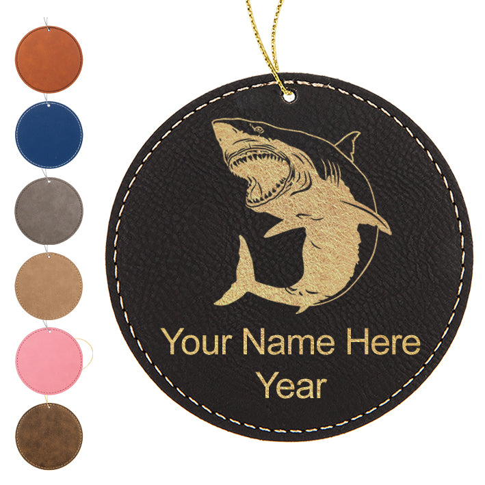LaserGram Christmas Ornament, Great White Shark, Personalized Engraving Included (Faux Leather, Round Shape)