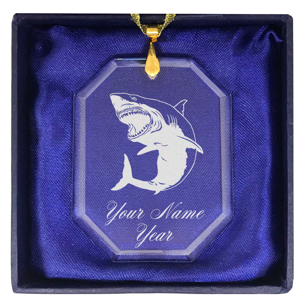 LaserGram Christmas Ornament, Great White Shark, Personalized Engraving Included (Rectangle Shape)