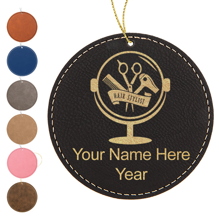 LaserGram Christmas Ornament, Hair Stylist, Personalized Engraving Included (Faux Leather, Round Shape)