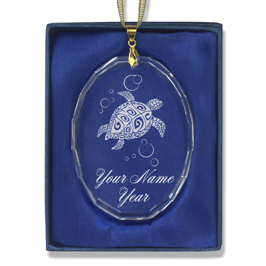 LaserGram Christmas Ornament, Hawaiian Sea Turtle, Personalized Engraving Included (Oval Shape)