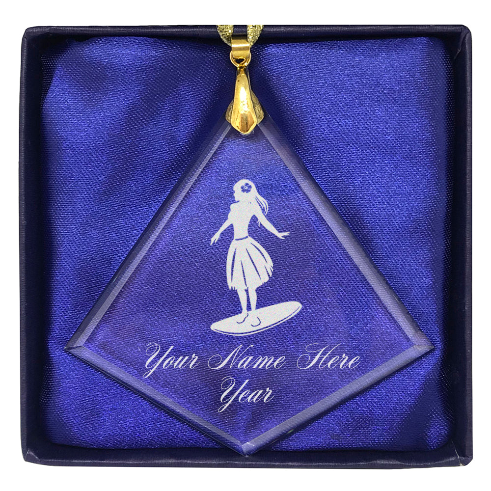 LaserGram Christmas Ornament, Hawaiian Surfer Girl, Personalized Engraving Included (Diamond Shape)