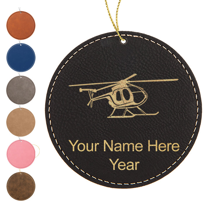 LaserGram Christmas Ornament, Helicopter 1, Personalized Engraving Included (Faux Leather, Round Shape)