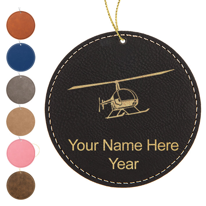 LaserGram Christmas Ornament, Helicopter 2, Personalized Engraving Included (Faux Leather, Round Shape)