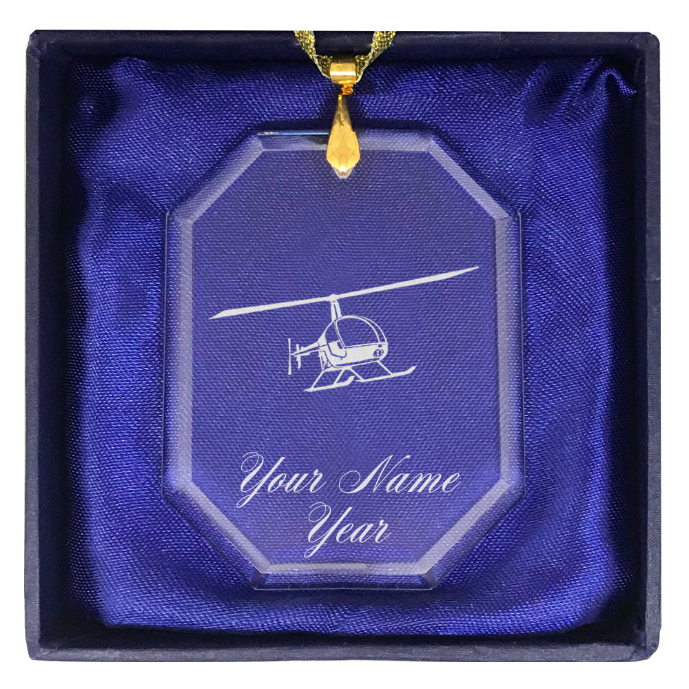LaserGram Christmas Ornament, Helicopter 2, Personalized Engraving Included (Rectangle Shape)