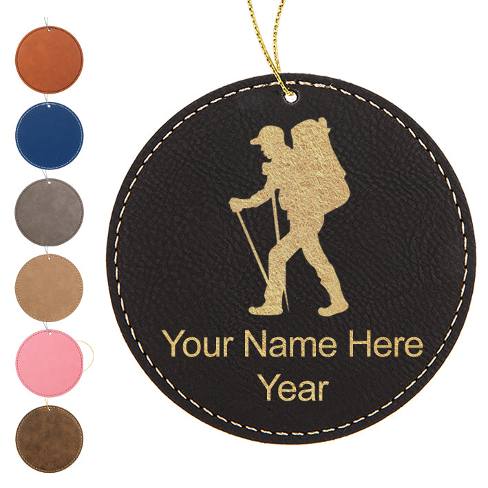 LaserGram Christmas Ornament, Hiker Man, Personalized Engraving Included (Faux Leather, Round Shape)
