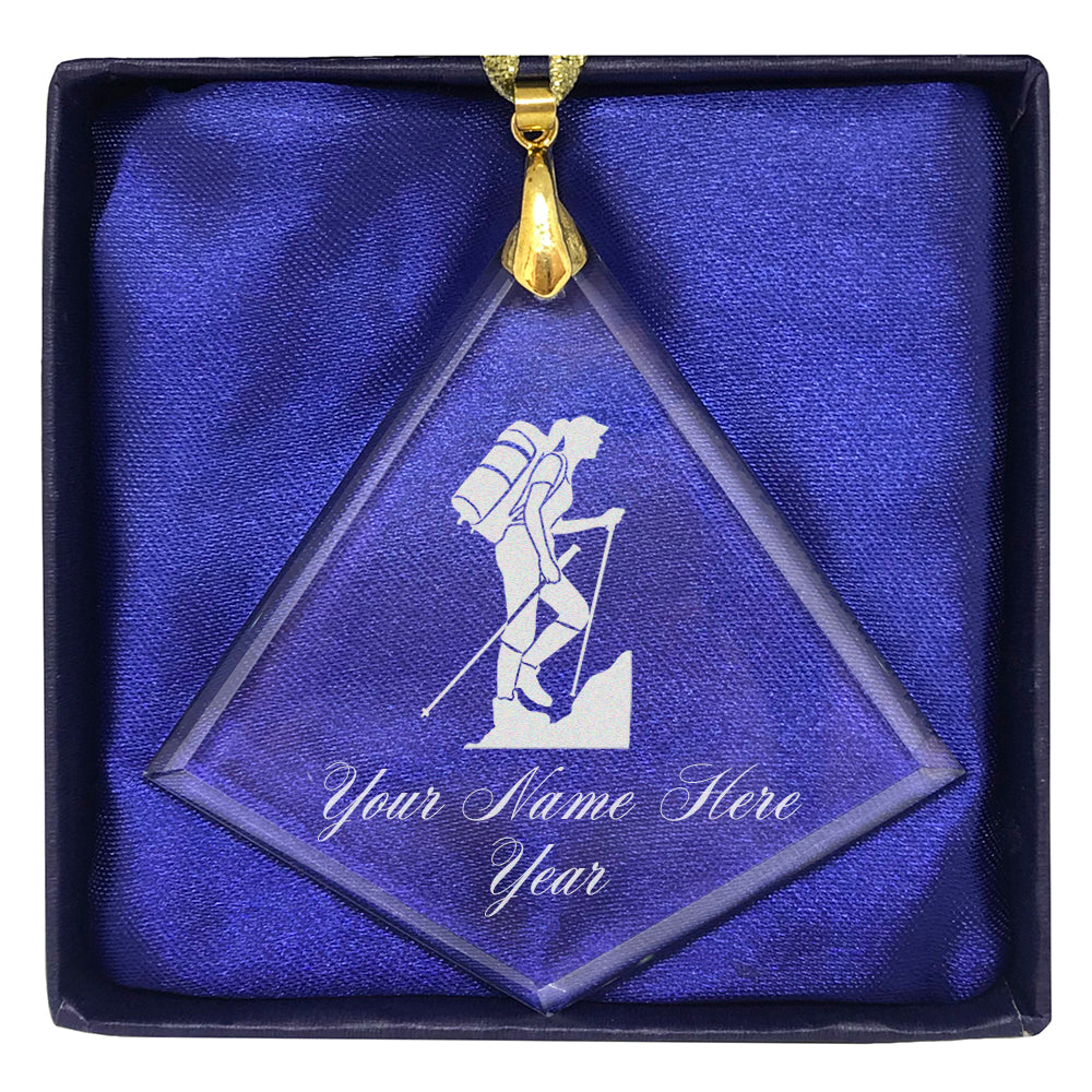 LaserGram Christmas Ornament, Hiker Woman, Personalized Engraving Included (Diamond Shape)