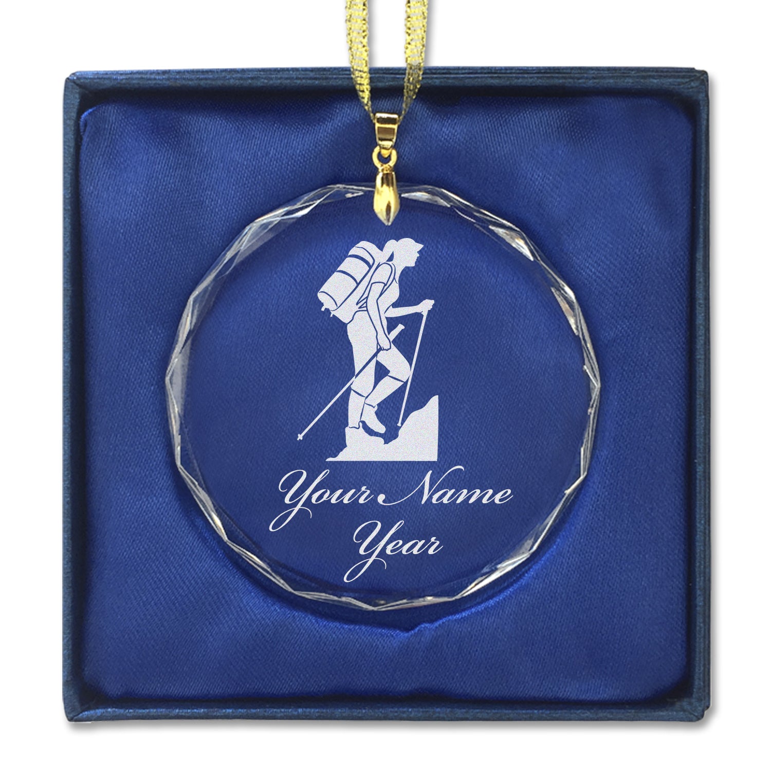 LaserGram Christmas Ornament, Hiker Woman, Personalized Engraving Included (Round Shape)