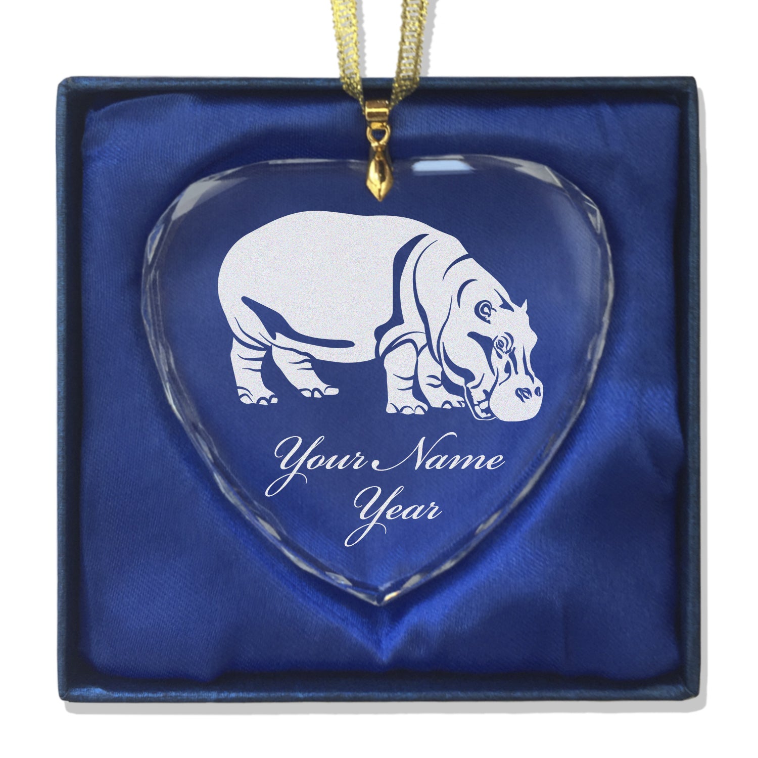 LaserGram Christmas Ornament, Hippopotamus, Personalized Engraving Included (Heart Shape)
