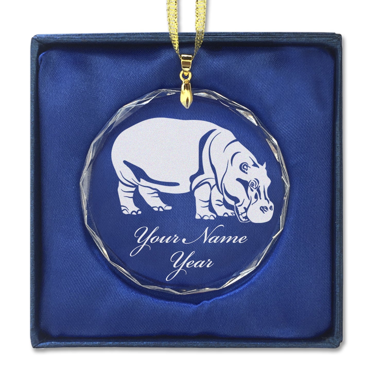 LaserGram Christmas Ornament, Hippopotamus, Personalized Engraving Included (Round Shape)