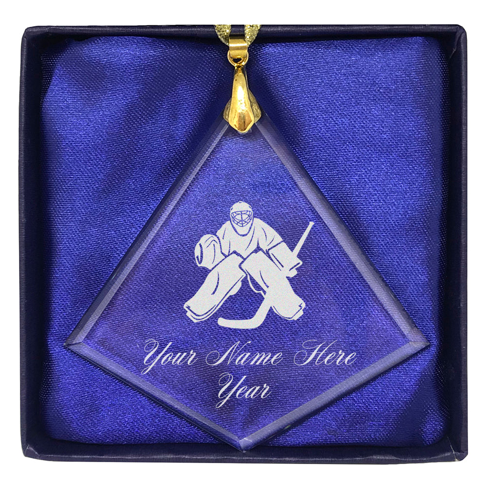 LaserGram Christmas Ornament, Hockey Goalie, Personalized Engraving Included (Diamond Shape)