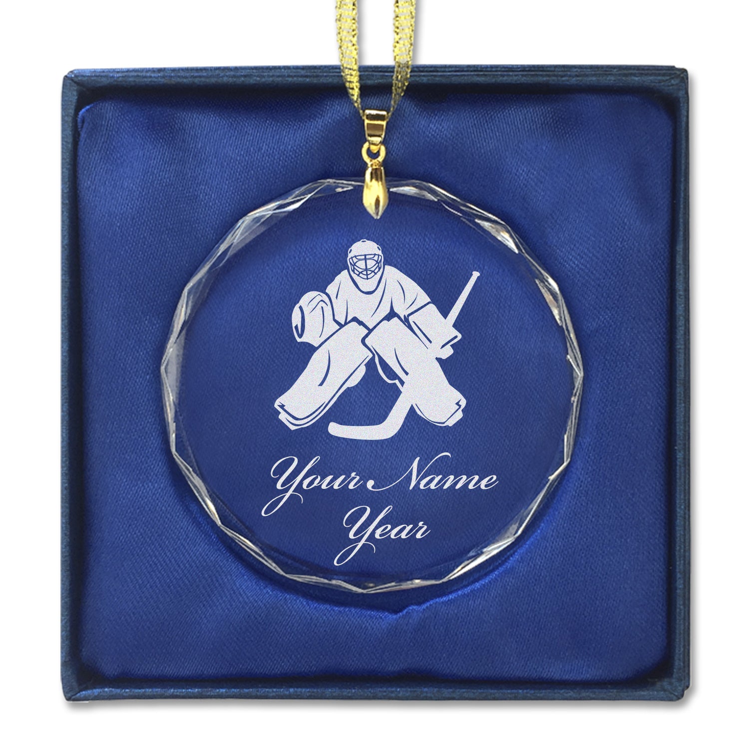 LaserGram Christmas Ornament, Hockey Goalie, Personalized Engraving Included (Round Shape)