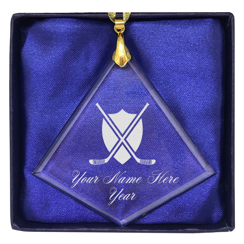 LaserGram Christmas Ornament, Hockey Sticks, Personalized Engraving Included (Diamond Shape)