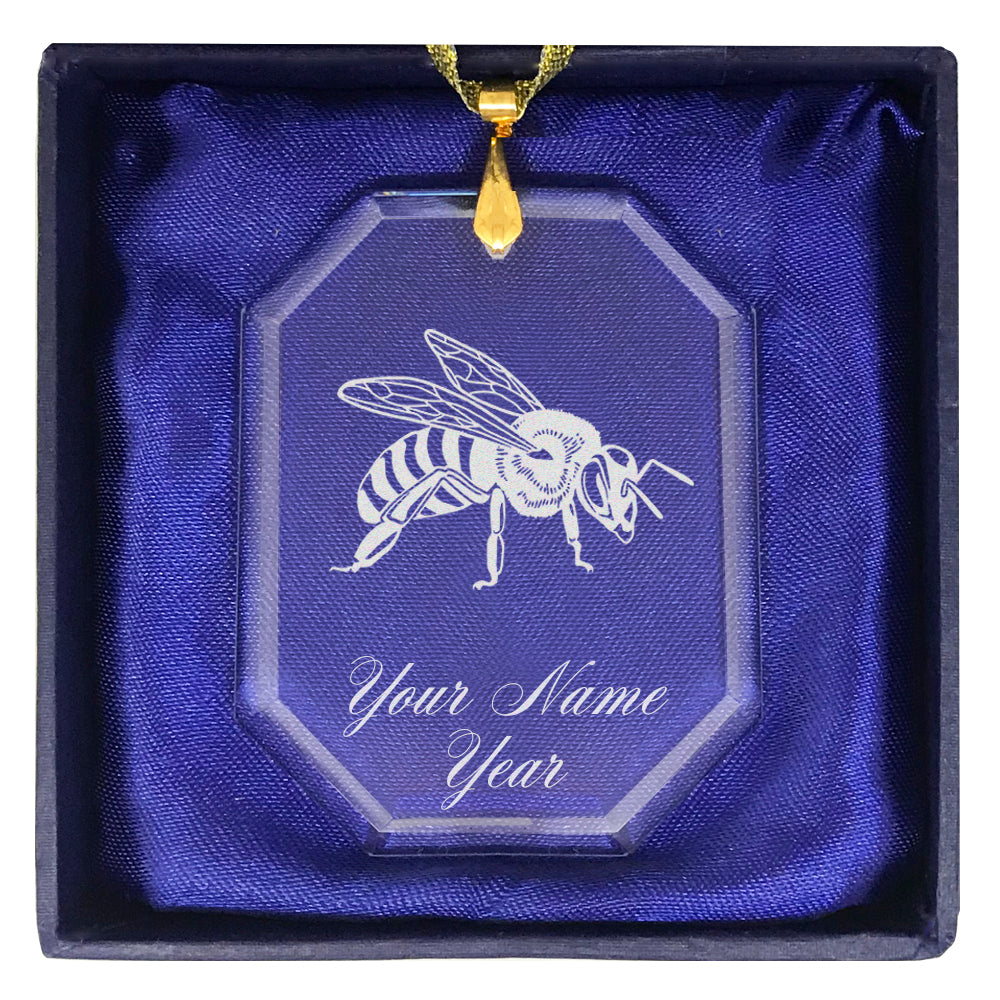 LaserGram Christmas Ornament, Honey Bee, Personalized Engraving Included (Rectangle Shape)
