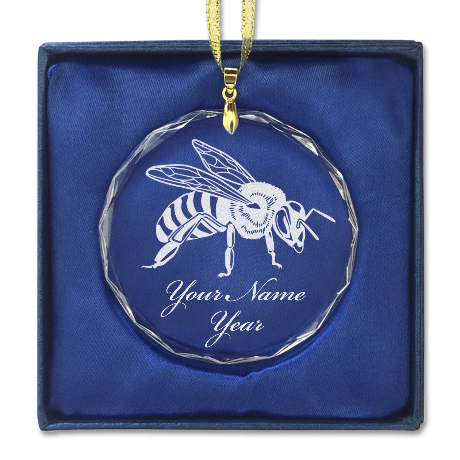 LaserGram Christmas Ornament, Honey Bee, Personalized Engraving Included (Round Shape)