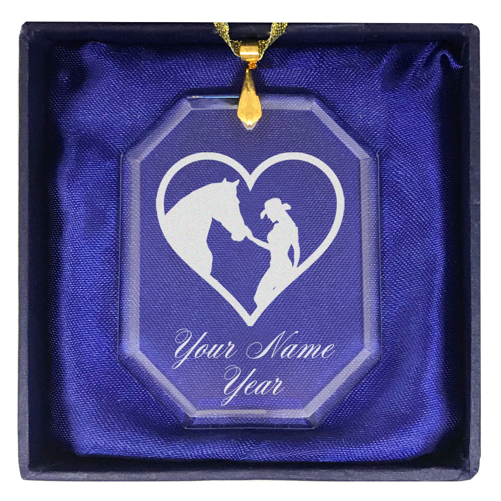 LaserGram Christmas Ornament, Horse Cowgirl Heart, Personalized Engraving Included (Rectangle Shape)