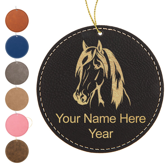 LaserGram Christmas Ornament, Horse Head 1, Personalized Engraving Included (Faux Leather, Round Shape)