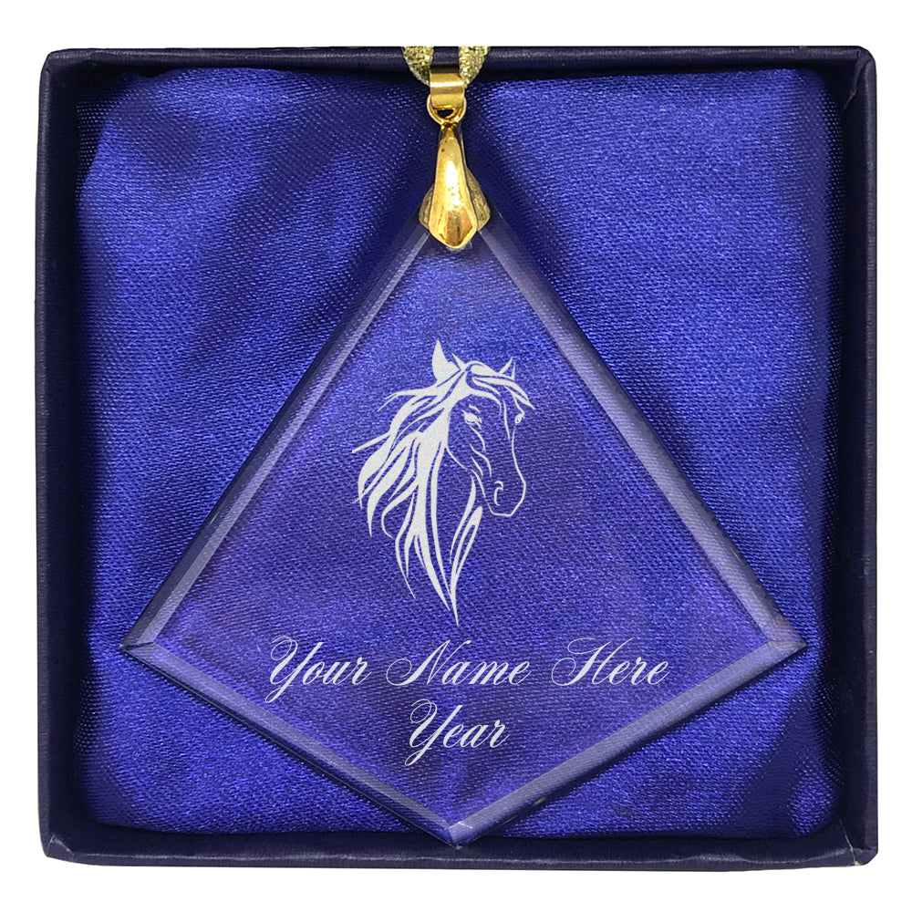 LaserGram Christmas Ornament, Horse Head 3, Personalized Engraving Included (Diamond Shape)