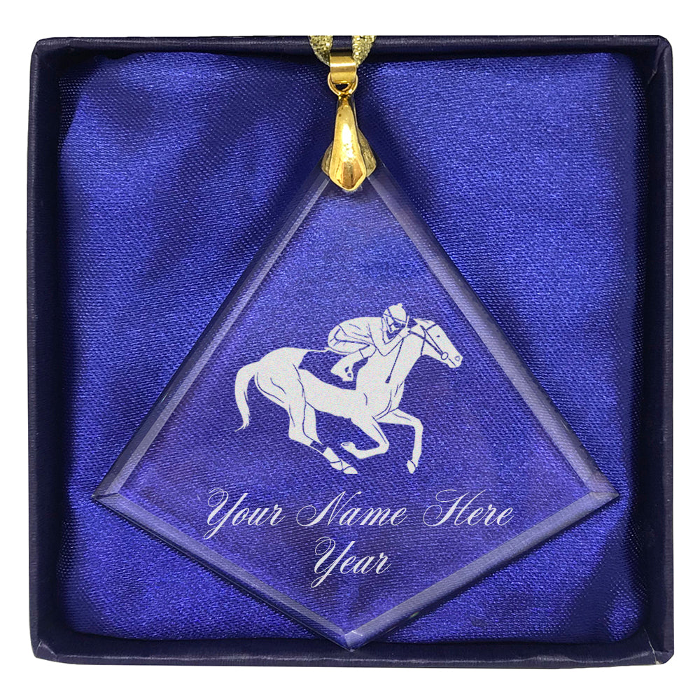 LaserGram Christmas Ornament, Horse Racing, Personalized Engraving Included (Diamond Shape)