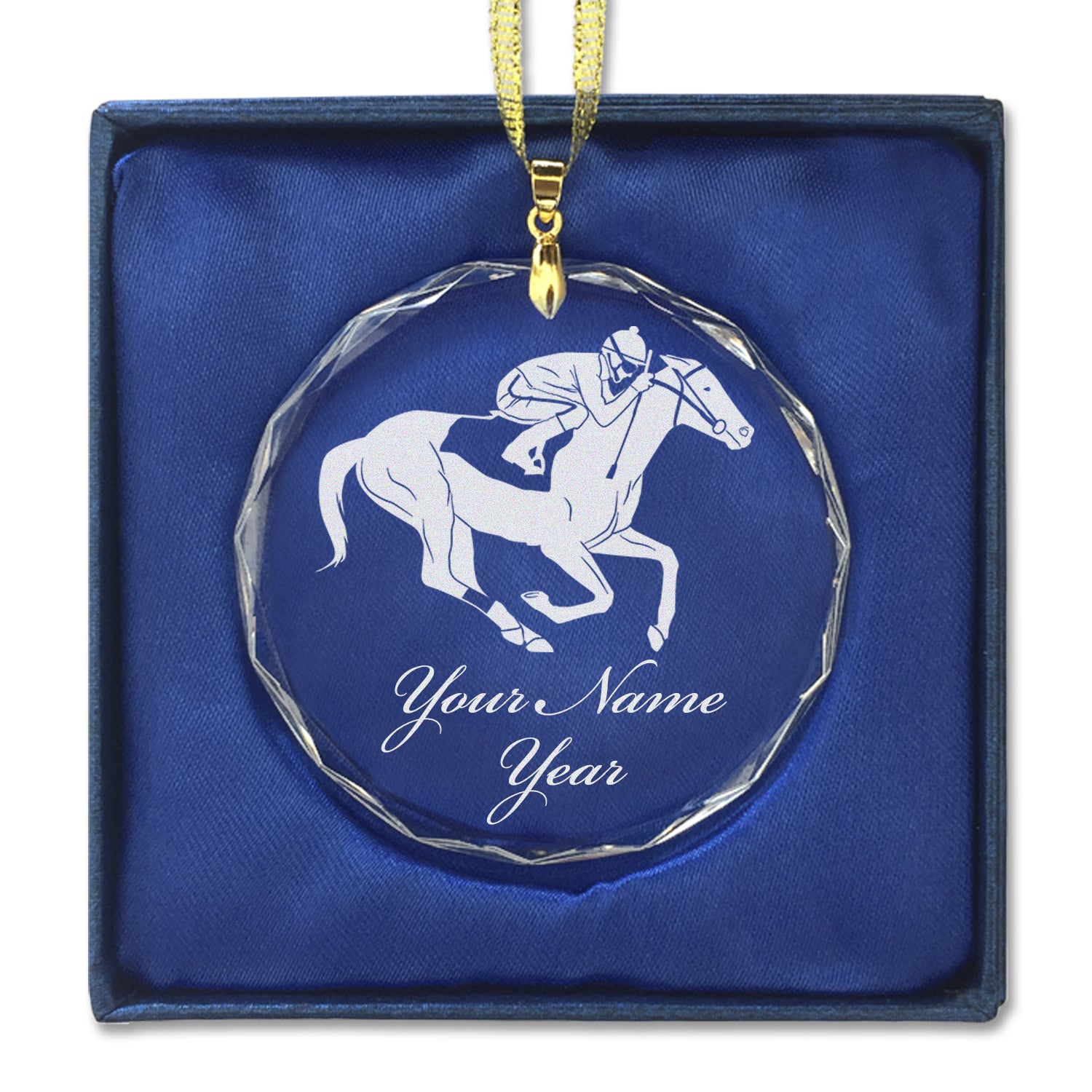 LaserGram Christmas Ornament, Horse Racing, Personalized Engraving Included (Round Shape)