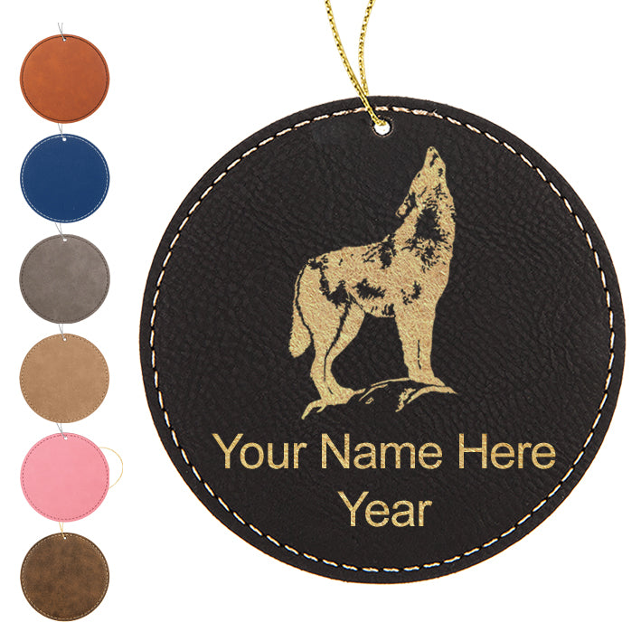 LaserGram Christmas Ornament, Howling Wolf, Personalized Engraving Included (Faux Leather, Round Shape)