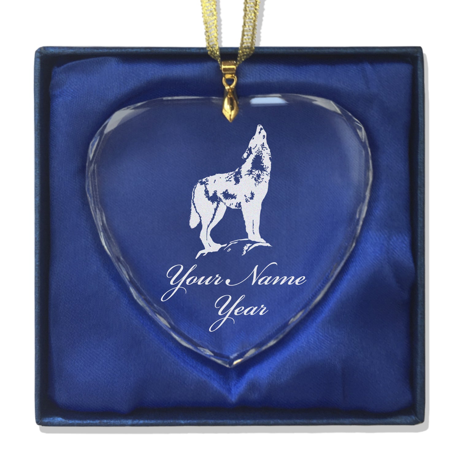 LaserGram Christmas Ornament, Howling Wolf, Personalized Engraving Included (Heart Shape)