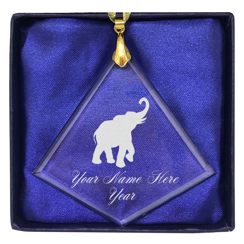 LaserGram Christmas Ornament, Indian Elephant, Personalized Engraving Included (Diamond Shape)