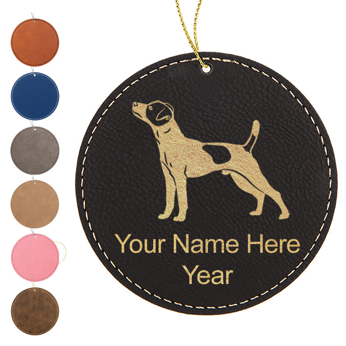 LaserGram Christmas Ornament, Jack Russell Terrier Dog, Personalized Engraving Included (Faux Leather, Round Shape)